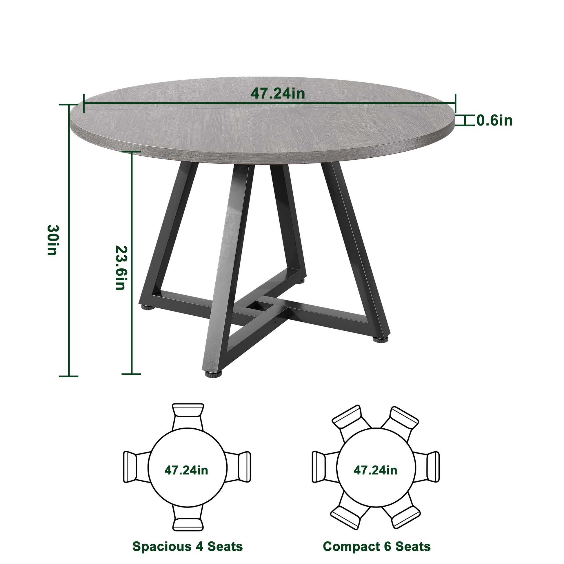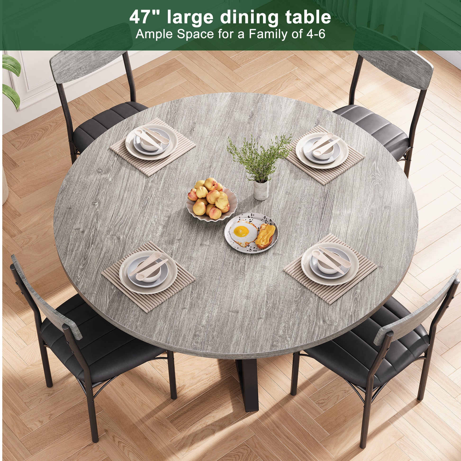 Anyact 47in Round Dining Table for 4, Kitchen Dining Room Circle Dinner Pedestal Table,Kitcen Table Sturdy Wood Kitchen & Dining Room Furniture, Gray