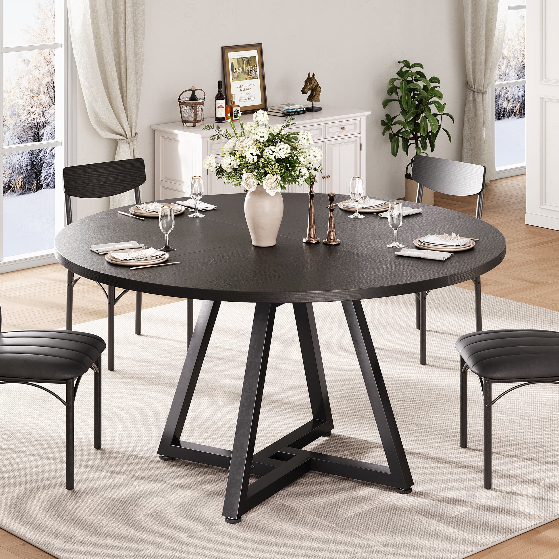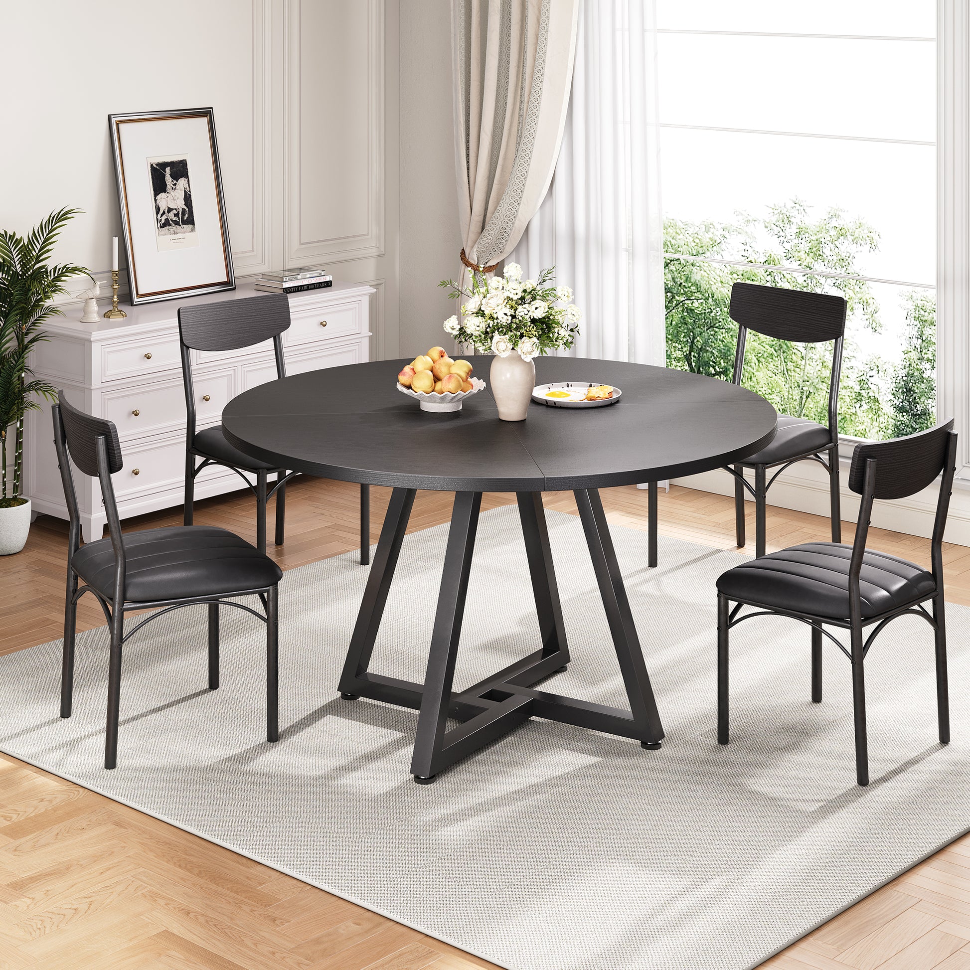 Anyact 51in Round Dining Table, Circle Dinner Table Pedestal Metal Frame, Kitcen Table Sturdy Wood Kitchen & Dining Room Furniture, Black(Only table)