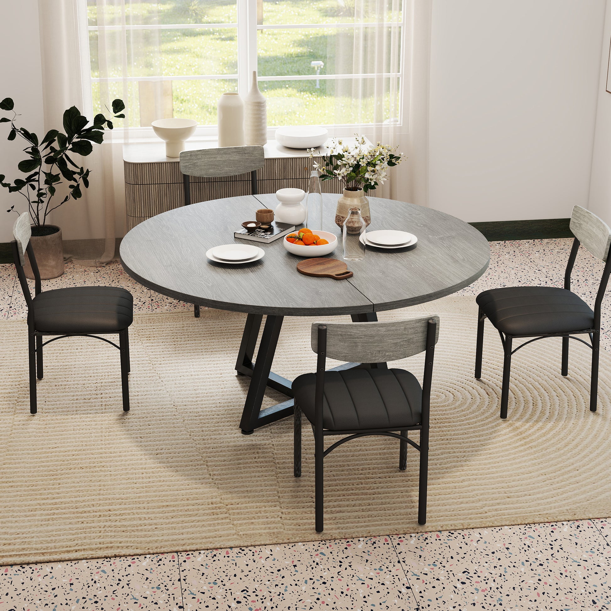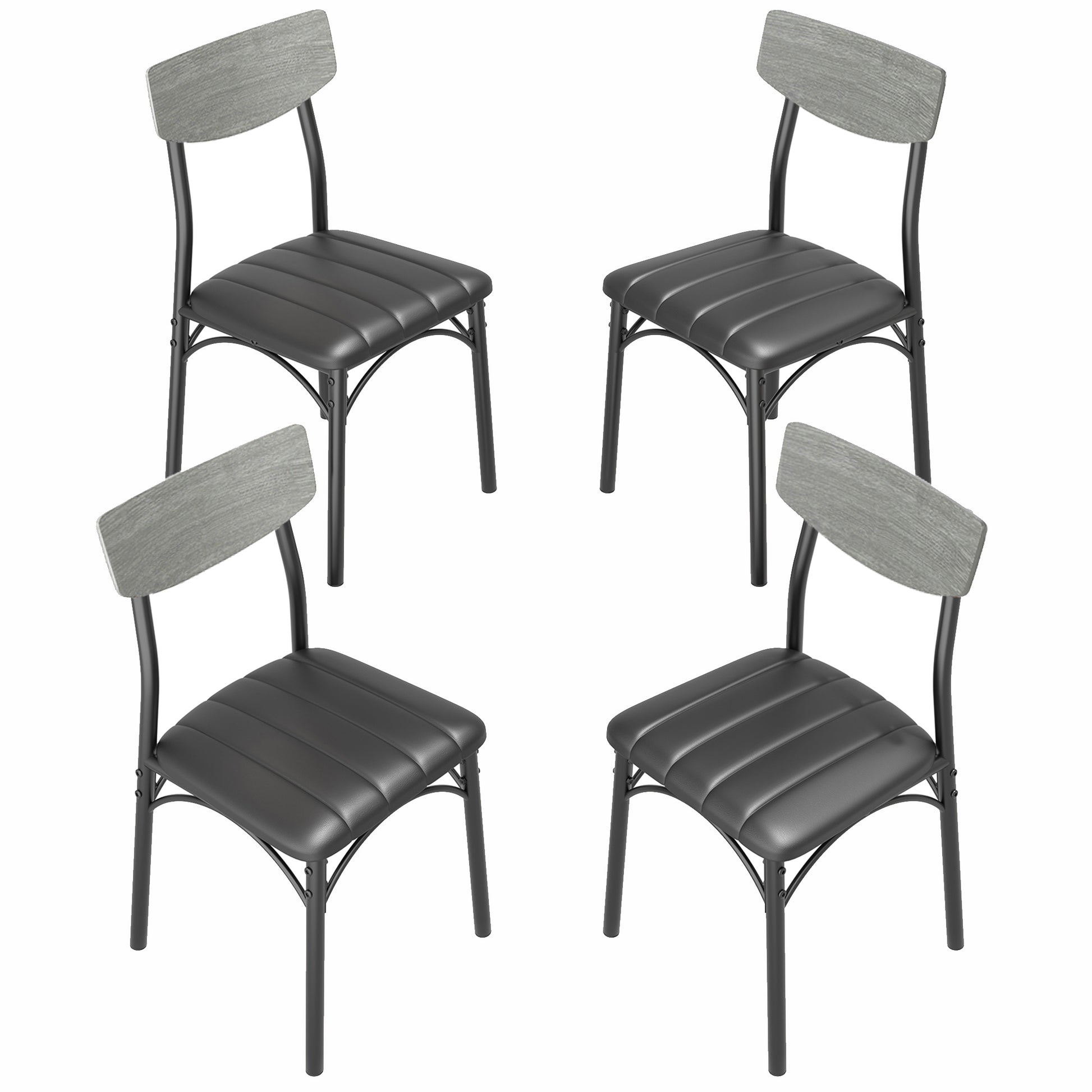 Anyact Dining Chairs Set of 4, Mid-Century Modern Upholstered PU Dining Room Chair, Metal Legs for Kitchen Dining Chairs, Gray