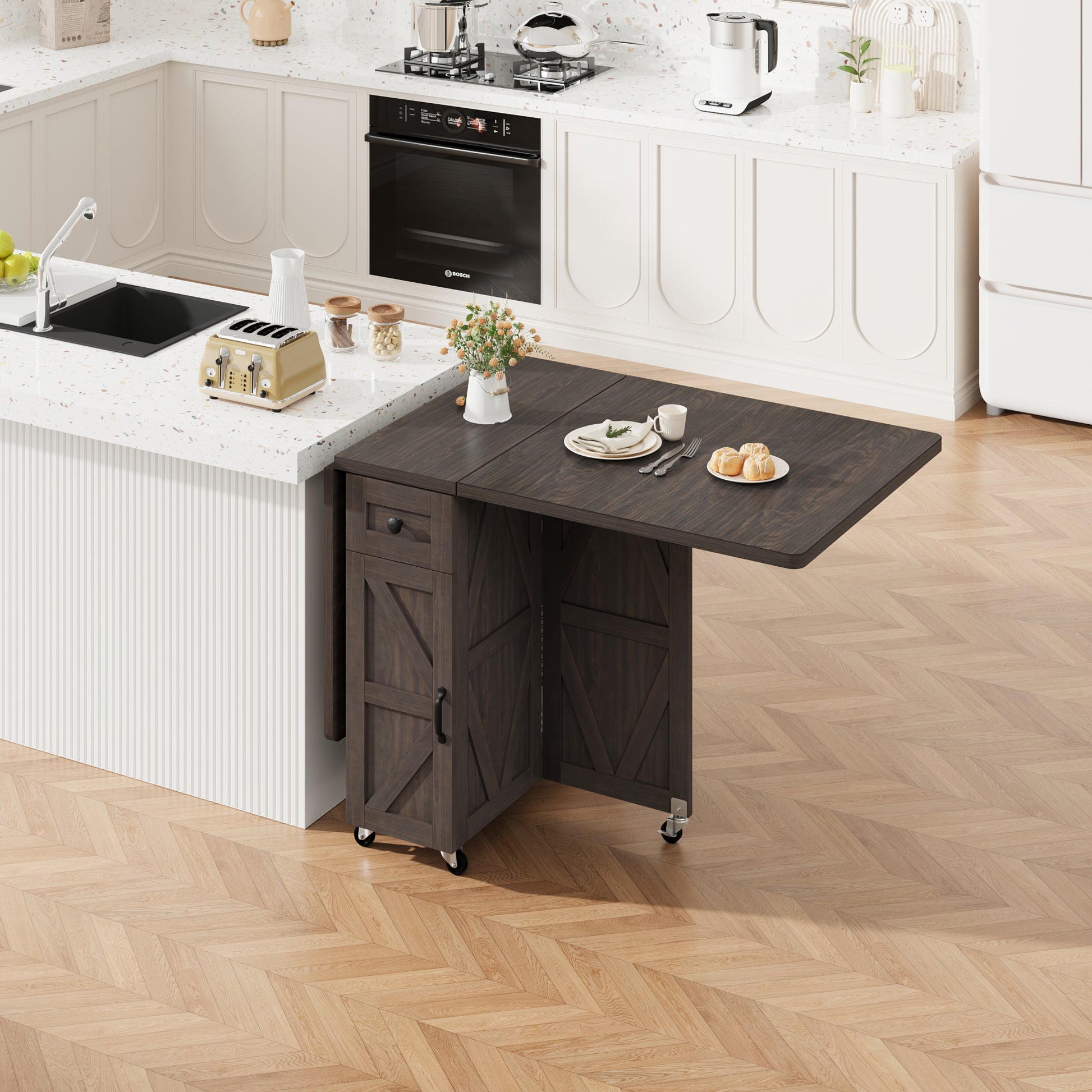 - Anyact folding dining table with 6 wheels,move it anywhere in the home, and the flexible casters on the moving board make it easy to expand and fold the table