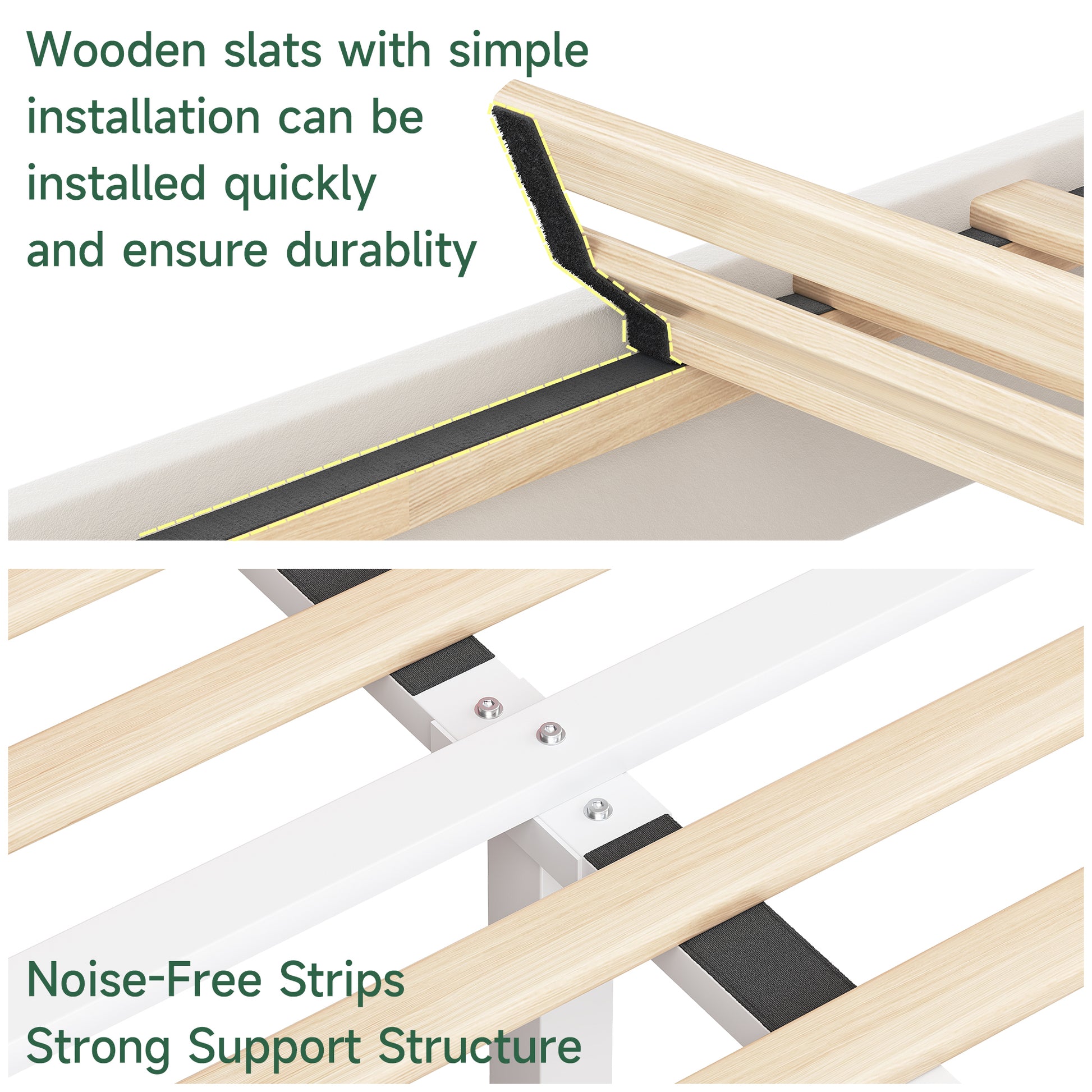 - Noise Free Design: Carefully designed joints and sturdy construction ensure a noise-free experience, providing a quiet and comfortable sleeping environment. No matter how you move it, there will be no more squeaks, allowing you to enjoy a peaceful night's sleep.