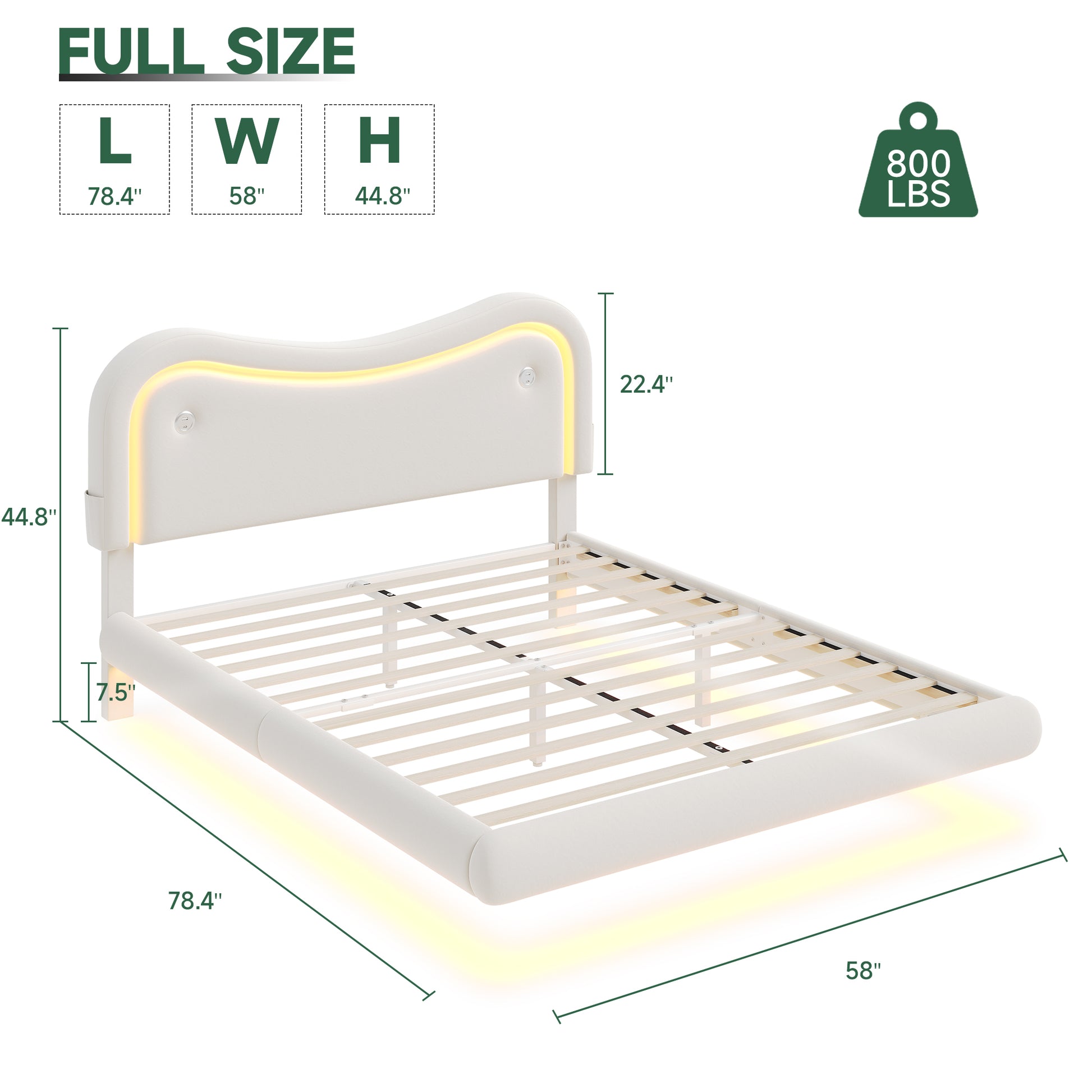 - Built-in LED Headboard and Bed Frame: Our floating full bed frame is embedded with RGB LED lights, offering over 60,000 colors. You can freely choose the color you want to display. While meeting the lighting needs, it can also create a romantic atmosphere in the room.