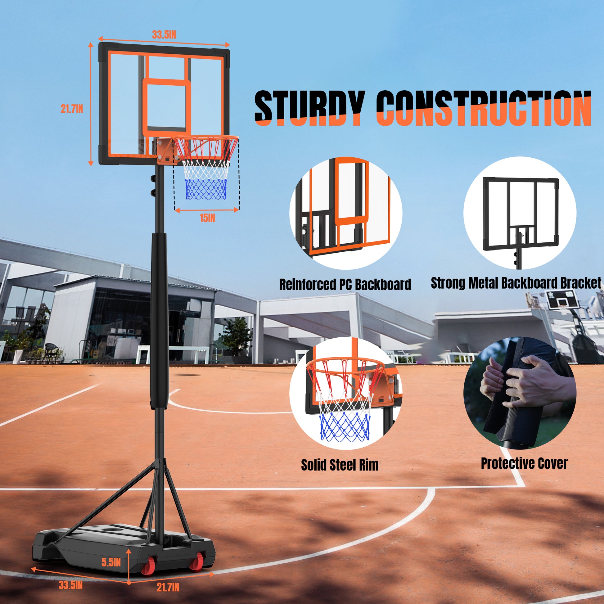 Skyhot 4.92-8.53ft Adjustable Portable Basketball Hoop&Goals for Kids/Teenagers/Youth/Adult in Backyard/Driveway/Indoor/Outdoor with Enlarged Base and PC Backboard